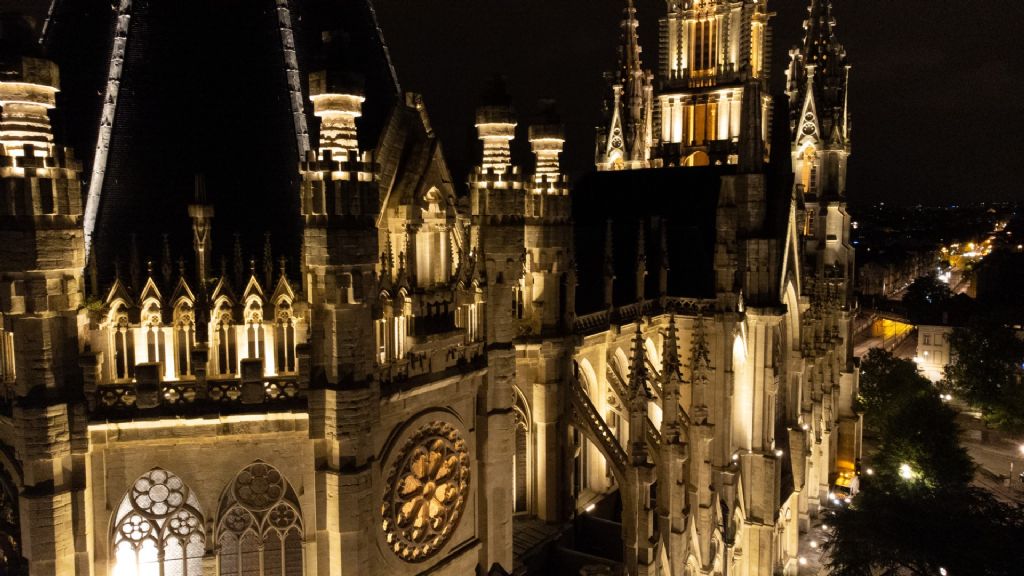 La nuit est tombée. Une lueur dorée illumine désormais les arcs de la majestueuse église Notre-Dame de Laeken et une lumière blanche accentue les éléments de la façade qui s’élèvent vers le ciel. Les concepteurs lumières Light to Light et VK Engineering ont créé un jeu d’ombre et de lumière qui met en valeur l’architecture néo-gothique et donne plus de profondeur aux façades. Le résultat est majestueux.