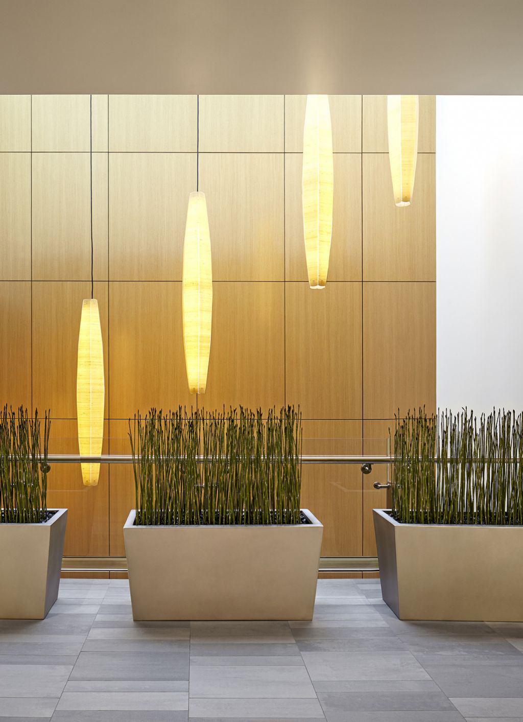 Dès que les souhaits des patients et des employés ont été notés, l‘agence CannonDesign a commencé à chercher les matériaux et les solutions de design adaptés. Le design repose sur cinq piliers, allant de la chaleur et du dynamisme, jusqu’à l’accessibilité aux fauteuils roulants et à la durabilité.
