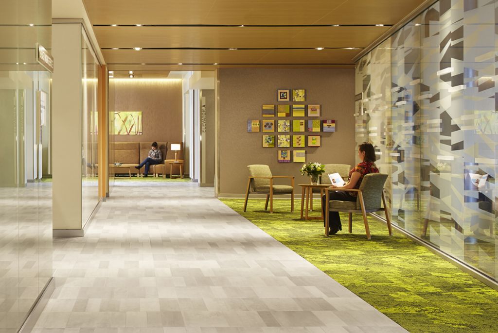 Madame Heather Clinger, architecte en charge de l'aménagement intérieur, explique l'importance d'un design réfléchi dans un établissement de santé. « Les patients préfèreraient ne pas être ici mais ils sont contraints d’y venir souvent pour suivre leur traitement. C’est de cette constatation que nous sommes partis », explique Madame Clinger. « Nous nous sommes tournés vers les patients et nous avons demandé leur aide pour donner forme au design. ProHealth disposait d'un très large groupe de patients qui a exprimé des attentes très claires sur le futur centre de ProHealth Care. Le centre devait avant tout être ouvert, stimuler les échanges et offrir des espaces séparés qui permettent aux patients de s'isoler. Ces patients ont également exprimé le souhait de pouvoir découvrir de nouvelles choses à chacune de leurs visites, car ils passent beaucoup de temps dans l'établissement. En parallèle des patients, nous avons également consulté une équipe de design composée d'employés de ProHealth Care ».