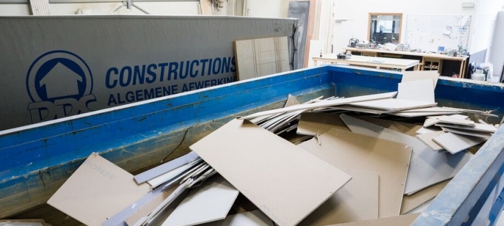 Danny De Cauwer précise comment le service de recyclage fonctionne : « Nous louons un conteneur de 20 m³ à Gyproc®. Nous l’amenons dans notre entrepôt et nous y trions tous nos déchets de plâtre. Dans notre cas, il s’agit principalement de restes de coupe provenant de notre entrepôt et, de temps à autre, de déchets issus de nos chantiers de démolition. Nous les ramenons chez nous au lieu de les jeter avec le tout-venant. Tous les trois mois, ou plus vite si nous le demandons, ce conteneur est remplacé par un conteneur vide, après quoi Gyproc® se charge du traitement des déchets. C’est on ne peut plus simple. »