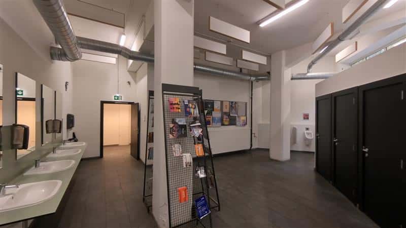 Le building manager loue également la méthode de travail des installateurs d’Akoestiekfabriek. « En raison des nombreuses poutres, luminaires et câbles électriques présents dans la zone sanitaire, l’installation des panneaux acoustiques n’était pas une tâche aisée.Pourtant, le résultat est non seulement performant et abordable, mais aussi particulièrement élégant », conclut-il.