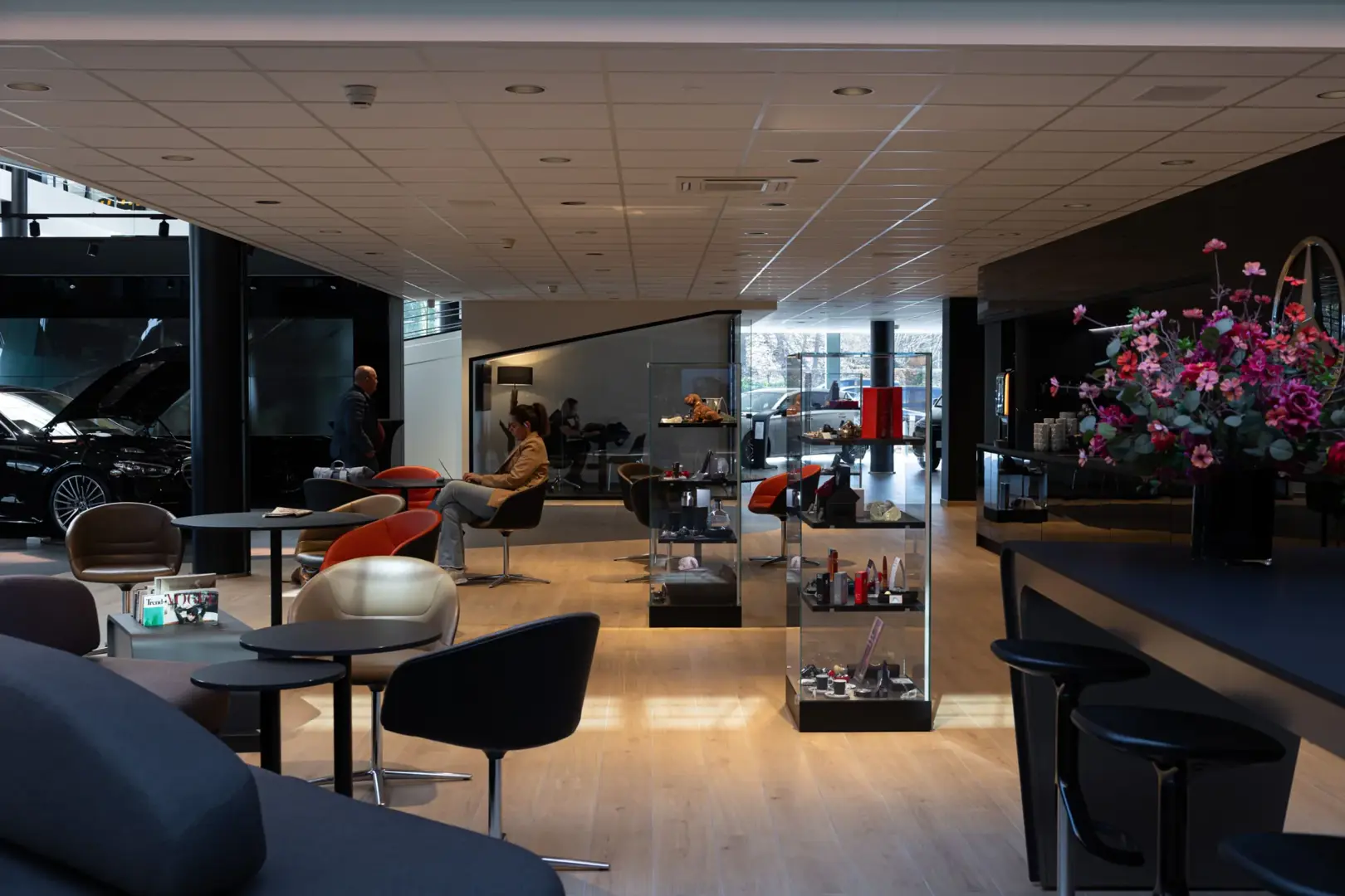Acheter une voiture aujourd’hui n’est pas la même chose qu’il y a quelques années. Les clients sont souvent bien informés avant d’entrer dans la salle d’exposition. Ce qu’ils recherchent, c’est l’expérience. Et c’est exactement ce à quoi Maurin Belgium répond. “D’une part, nous optons pour des salles lumineuses avec de hauts plafonds pour les voitures. D’autre part, nous disposons d’espaces clients agréables où les visiteurs peuvent prendre un café en toute tranquillité et discuter de manière informelle avec nos vendeurs. Cette répartition contribue au sentiment de calme et de qualité que les clients ressentent ici”, explique Thierry Jacquet, directeur de Maurin Belgium/Group Jam.