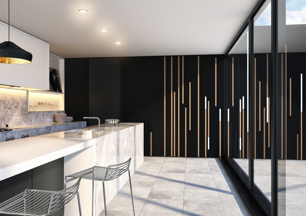 Vous pouvez personnaliser les profils verticaux, entre autres en les agrémentant d’inserts en bois, de rubans LED ou encore de textes. Voici donc un éventail de possibilités pour apporter une personal touch à votre extérieur.