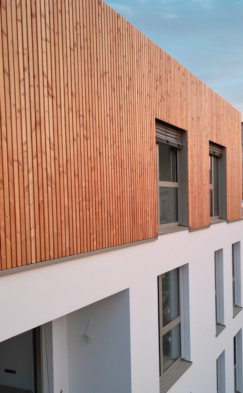 Le bâtiment a été surélevé de deux étages et complété d’une extension, accueillant ainsi 73 appartements et 300 m² de services. À l'arrière, trois nouvelles résidences et un jardin paysager enrichissent le site. Deux niveaux de sous-sol offrent 90 places de parking et des caves, assurant ainsi une fonctionnalité optimale pour les résidents.