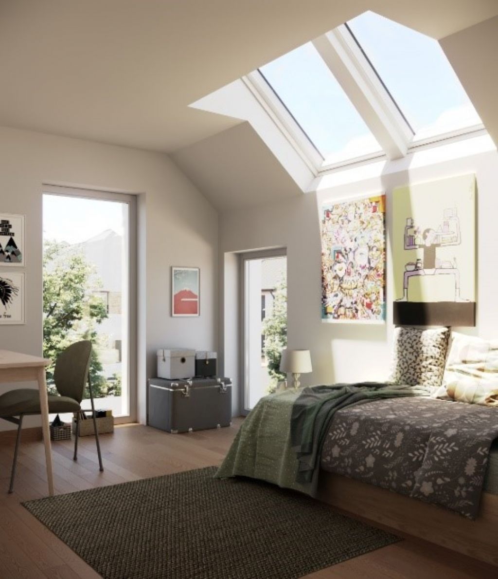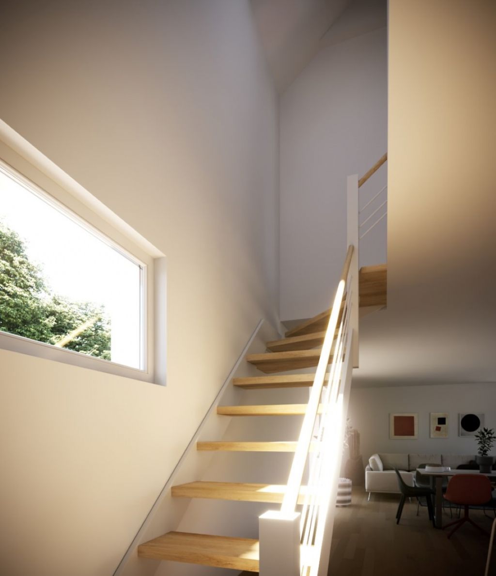 Sur base de cette norme et de leur expertise, VELUX et Thomas & Piron ont décidé de travailler main dans la main sur ce projet pilote, et de cumuler fenêtres verticales et fenêtres de toit afin d’optimiser l’apport en lumière naturelle dans toutes les pièces de vie à l’étage de la maison. Ce sont donc 8 fenêtres de toit et 2 puits de lumière qui ont été ajoutés au projet.