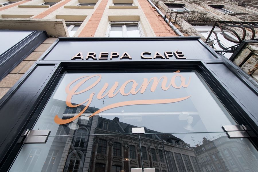 Guamá Arepa Café est une brasserie située en plein cœur de Lille. L'aménagement et la décoration de l'établissement ont été réalisés par le bureau d'architectes d'intérieur Idesign it, à la demande d'Integral Interiors. Au menu, on trouve principalement des plats vénézuéliens de type street food. Le sentiment de cuisine du monde se reflète également dans le concept et l'aménagement de l'établissement. « La brasserie devait proposer une ambiance cosmopolite et conviviale », explique Valerie Sonneville de Idesign it.