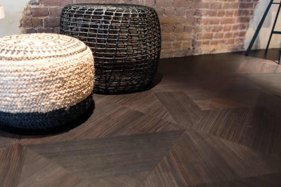 Le sol du bas est ainsi constitué d'un bois tropical foncé avec une structure palpable et un relief hyperréaliste. Un jeu de lignes visuellement attrayant réunit un patchwork complexe de côtes rigides. « Ce sol correspond à merveille à l'ambiance du bar. Nous avons également prolongé ce motif au bar ainsi qu'au mur où est accrochée la porte coulissante menant aux toilettes. Cela forme un bel ensemble original. »