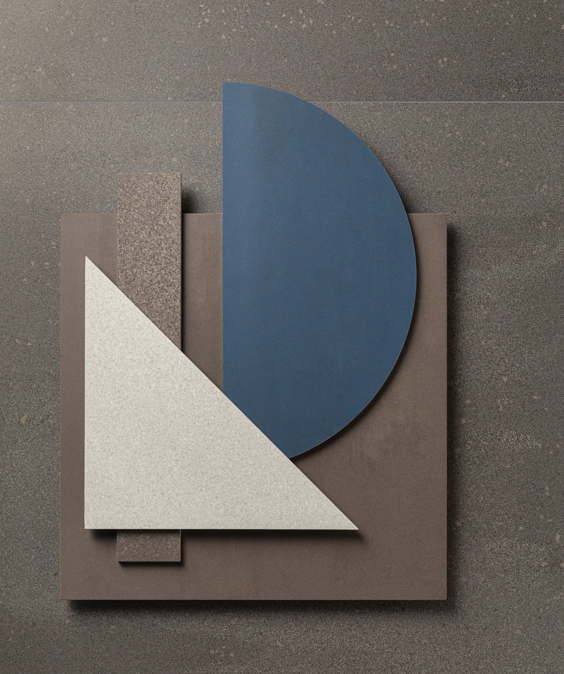 Les possibilités de création de surfaces uniques augmentent encore grâce à l’ajout de sept nouvelles formes innovantes. Outre les carrés et rectangles traditionnels, la Core Collection comporte également des cercles, des triangles et des formes pour des combinaisons infinies. Tous les formats et formes de carreaux sont modulaires, afin que les architectes et designers puissent les associer facilement entre eux pour un résultat superbe et imposant. Cela permet également d’utiliser le matériau dans son intégralité et d’éviter les déchets de découpe lors de la production des formes et schémas de pose Mosa.