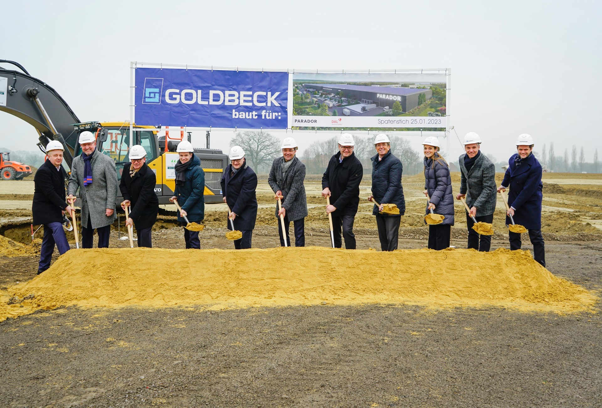 C'est le 25 janvier à 11 heures qu'a été donné le premier coup de pioche du nouveau centre logistique Parador sur le site de Coesfeld. Un nouveau bâtiment de 30 000 m², pouvant accueillir jusqu'à 30 000 palettes et disposant de suffisamment d'espace pour les activités opérationnelles, est en cours de construction sur la surface située entre la B474 et Millenkamp.