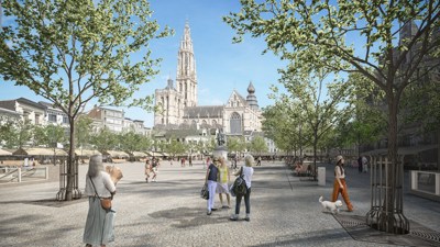 "La Groenplaats sera dotée d'un nouveau design contemporain, résistant au climat et orienté vers l'avenir", explique l'échevine du domaine public Erica Caluwaerts. "Ainsi, la place sera à nouveau à la hauteur de son nom et deviendra un véritable lieu de rencontre pour les Anversois. Les plans de la nouvelle Place Verte, tant en surface qu'en sous-sol avec le pré-métro, le tampon d'eau et les bunkers d'arbres, sont ambitieux. Par le passé, plus de 1 800 Anversois ont indiqué, lors d'un tour de table, qu'ils considéraient que la restauration et les terrasses, les grands événements et les séjours étaient importants pour la Groenplaats. Le futur Groenplaats y répond pleinement".