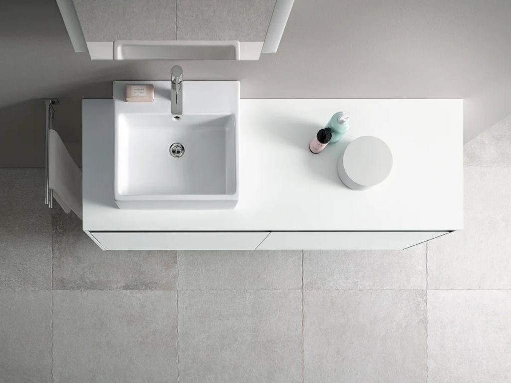 Ketho.2 convainc par des avantages concrets tels que le design, un rapport qualité/prix intéressant, une grande souplesse de planification, la durabilité et la qualité de la marque Duravit garante d’une longue durée d’utilisation. Sans oublier la finition très soignée des surfaces et des chants. Même les parties non visibles, par exemple celles au niveau de la découpe du siphon, reçoivent un traitement hydrofuge et sont insensibles aux éclaboussures ainsi qu’à un taux élevé d’humidité ambiante. Des chants en ABS résistants aux rayures et aux chocs sont utilisés pour les surfaces en décor et les placages de bois véritable. C’est également le cas pour les surfaces en décor HPL (stratifié haute pression).