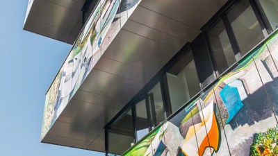 « Nous avons opté pour un design ludique en variant la largeur des plaques de façade. Cela a permis de créer une apparence dynamique qui n’avait pas besoin de s’aligner sur le rythme des fenêtres existantes », raconte Dekoning. « Par la suite, l’œuvre d’art — auparavant exposée sur des toiles — a été directement appliquée sur les panneaux à l’aide de stickers et d’un film résistant au feu. Cela a permis de créer une façade à la fois visuellement intéressante et techniquement réalisable. »