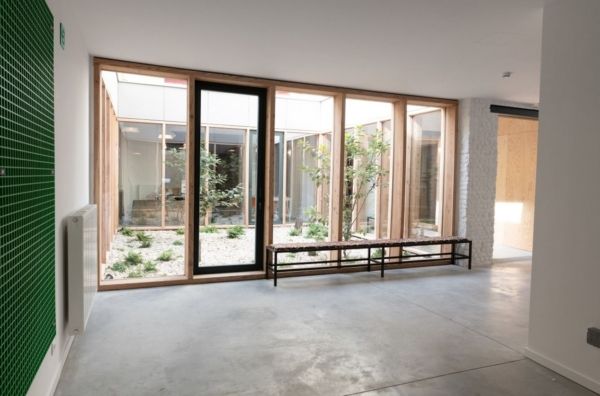 « La nouvelle Maison de Théâtre s'ancre dans la terre et se projette vers le ciel autour d’un vide inspirant, comme un cœur qui veut battre aux rythmes et pulsions de nos vies », affirme-t-on au Rideau de Bruxelles. « Le bâtiment n’avait pas du tout l’allure d’un théâtre », expliquent les architectes. « L’extérieur, réparti sur trois façades de dimensions différentes, était très discret, voire ambigu. Et à l’intérieur, le théâtre était constitué de cinq volumes hétéroclites, enserrés autour d’une cour dans un îlot bruxellois très dense. Notre principal geste architectural a été d’insérer au milieu de cet ensemble chaotique un patio vitré, qui structure ce chaos et en même temps le magnifie. Le patio organise la circulation dans le bâtiment, tout en soulignant la dimension domestique du lieu. » Ce patio est donc le véritable moteur du nouvel ensemble. « Autour du patio central, c’est comme une valse d’espaces prêts à répondre à toutes les dynamiques, les énergies de l’équipe, des artistes et des publics. »
