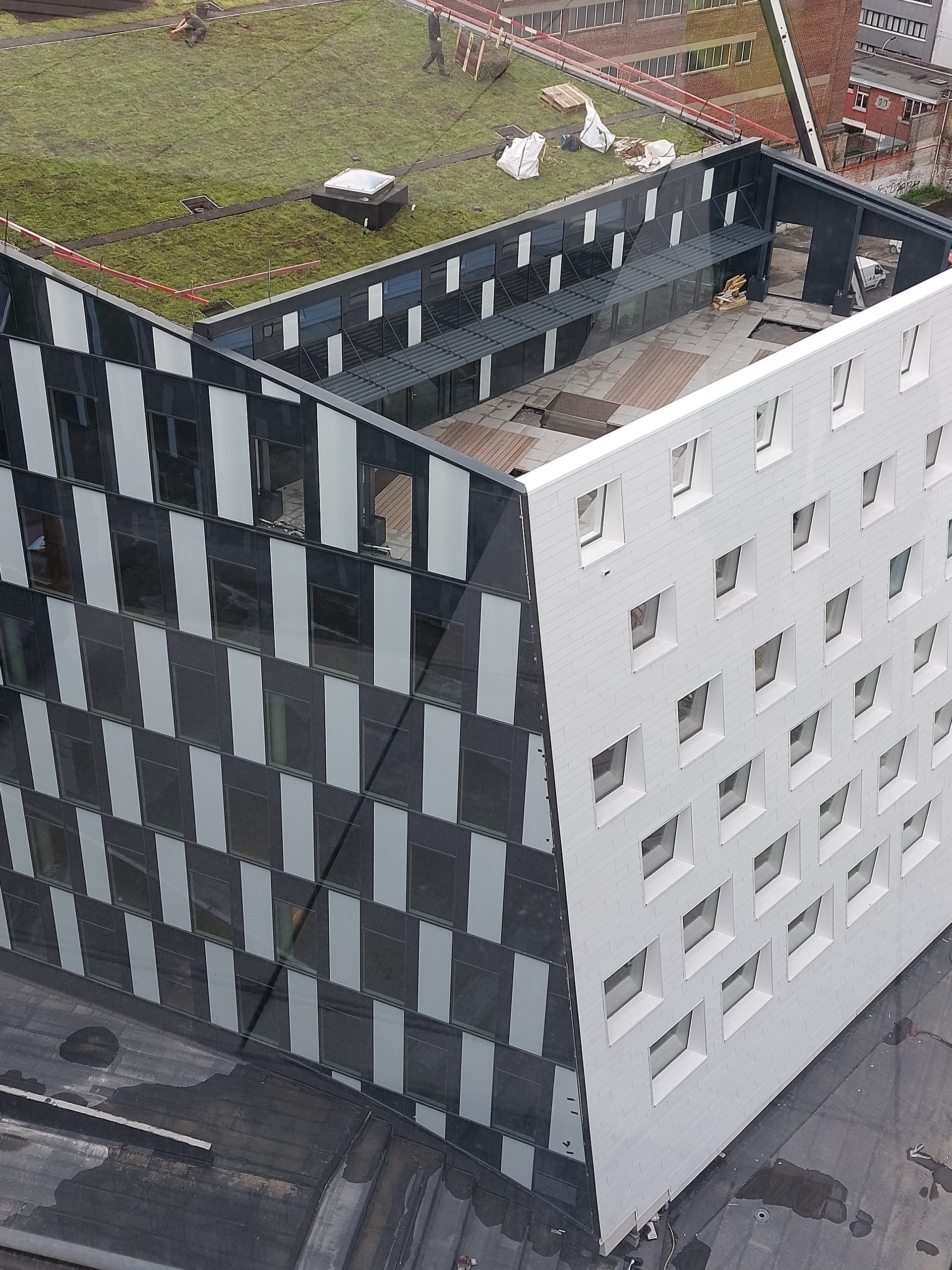 Marc De Greef, architecte et associé chez Jaspers-Eyers architect : « L’harmonie dégagée par le projet est le résultat de la collaboration entière et continue au sein de l’association momentanée entre trois bureaux d’architecture que sont A2M, BAG et Jaspers-Eyers. Ceux-ci étaient à l’époque déjà bien connus du promoteur à l’initiative du projet : Befimmo. Tous ont travaillé main dans la main sur les différentes phases du projet à partir de 2013 pour en faire quelque chose de cohérent. »