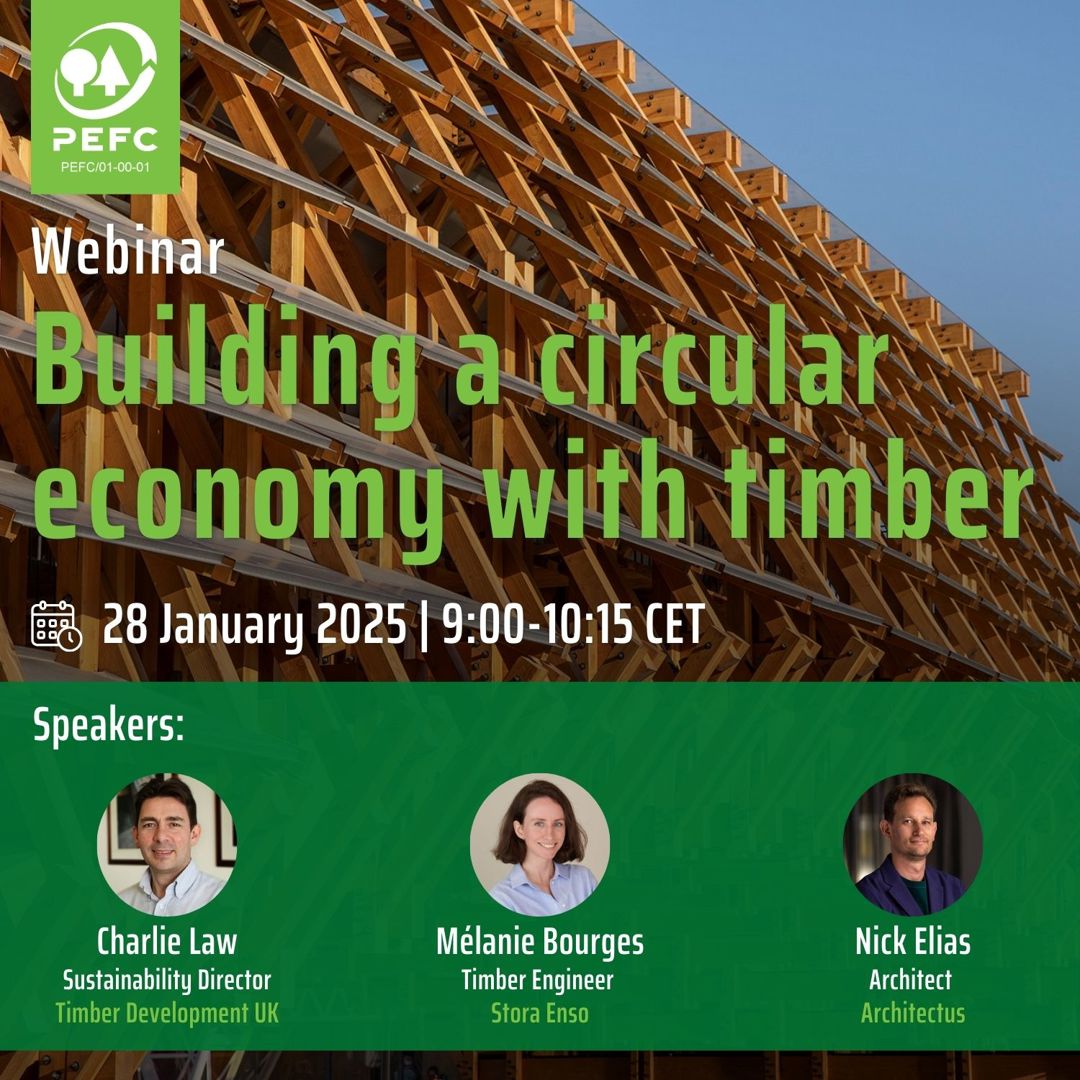 Le 28 janvier, PEFC International, l'organisation à l'origine du label PEFC, organise un webinaire intitulé « Building a circular economy with timber » (Construire une économie circulaire avec le bois) sur le rôle de la construction en bois dans la construction circulaire.
