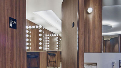 En 2022, une modernisation complète a également été réalisée dans les espaces sanitaires de Shoppi Tivoli ainsi que dans le salon pour fumeurs. Les exigences en matière d'hygiène et de fonctionnalité ont été parfaitement associées à une esthétique élégante et à une hospitalité moderne. L'aménagement, le revêtement mural et les meubles fixes ont tous été réalisés dans le décor en bois sombre Altamira Walnut de Pfleiderer, dans sa variante de structure Montana (MO). Des panneaux stratifiés à haute pression Duropal HPL, à la surface extrêmement résistante à l'usure, ainsi que des panneaux DecoBoard à revêtement direct, ont été utilisés.