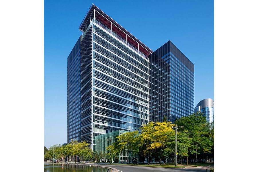 51N4E a eu l’idée de connecter les deux tours par un volume « capable » aux hauteurs d’étages doubles et grandes portées entre colonnes. Dans les anciennes tours, le concept Zebra alternerait les fonctions (bureau, logement, hôtel…) pour exploiter au maximum les hauteurs d’étages limitées. Amaury Leroy : « La connexion des deux tours avec le nouveau volume génère une augmentation de la charge du vent, mais fournit aussi la solution à cette contrainte, les deux noyaux fonctionnant de concert pour assurer un meilleur équilibre de l’ensemble. Le problème génère sa propre solution. »