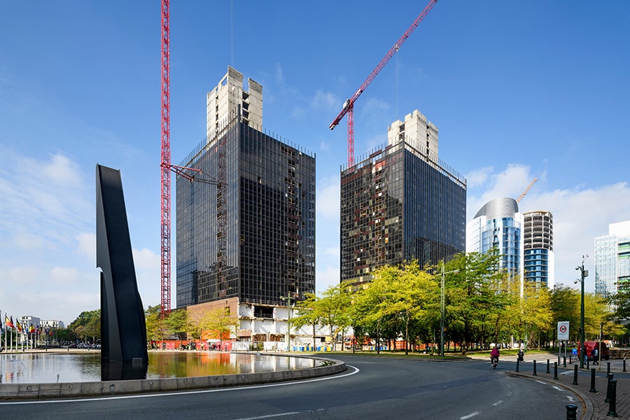 La transformation durable des tours WTC 1 et 2, vestiges du traumatisme urbanistique qu’a subi le quartier Nord à Bruxelles, en un projet mixte a déjà fait l’objet de nombreuses communications tant elle est exemplaire en matière de construction circulaire à grande échelle. Dans cet ambitieux projet, greisch avait une mission complète en stabilité. Alors que le nouveau complexe est à présent entièrement opérationnel, l’occasion est belle de revenir avec Amaury Leroy, Directeur de projet et Administrateur chez greisch, sur l’impact des choix structurels sur les aspects de durabilité et circularité, sources de défis techniques, de solutions innovantes mais aussi d’une collaboration étroite entre ingénieurs et architectes.