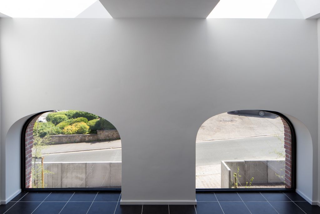 Les larges baies vitrées cadrent les vues sur le contexte à la manière de tableaux et participent à l’intégration du projet dans son contexte grâce à l’interaction créée entre les activités du bureau et la vie du quartier. Un jeu volumétrique simple définit le gabarit des volumes qui s’articulent avec le contexte. L’impact du projet est ainsi minimisé en maintenant un gabarit à l’échelle du bâti environnant. Les façades sobres adoptent un langage architectural lisse et sans ornement, tout en répondant généreusement au besoin fondamental de lumière naturelle.