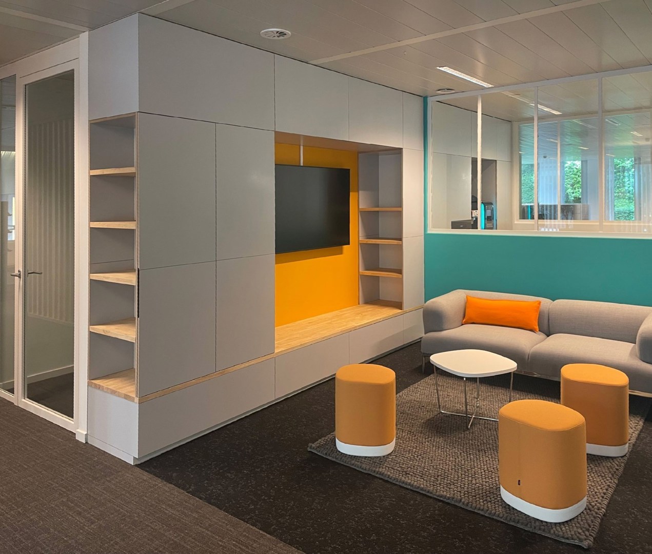 Réaménagement circulaire des bureaux de hub.brussels avec les produits Beddeleem