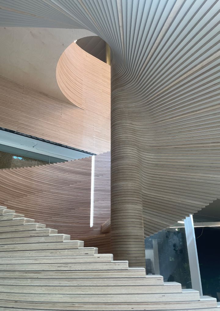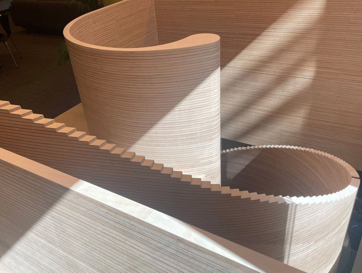 - Le chef d'œuvre absolu du nouveau bureau de hub.brussels est l'escalier entièrement nouveau, d'une hauteur de 4 mètres et réalisé en matériaux 100% recyclés.