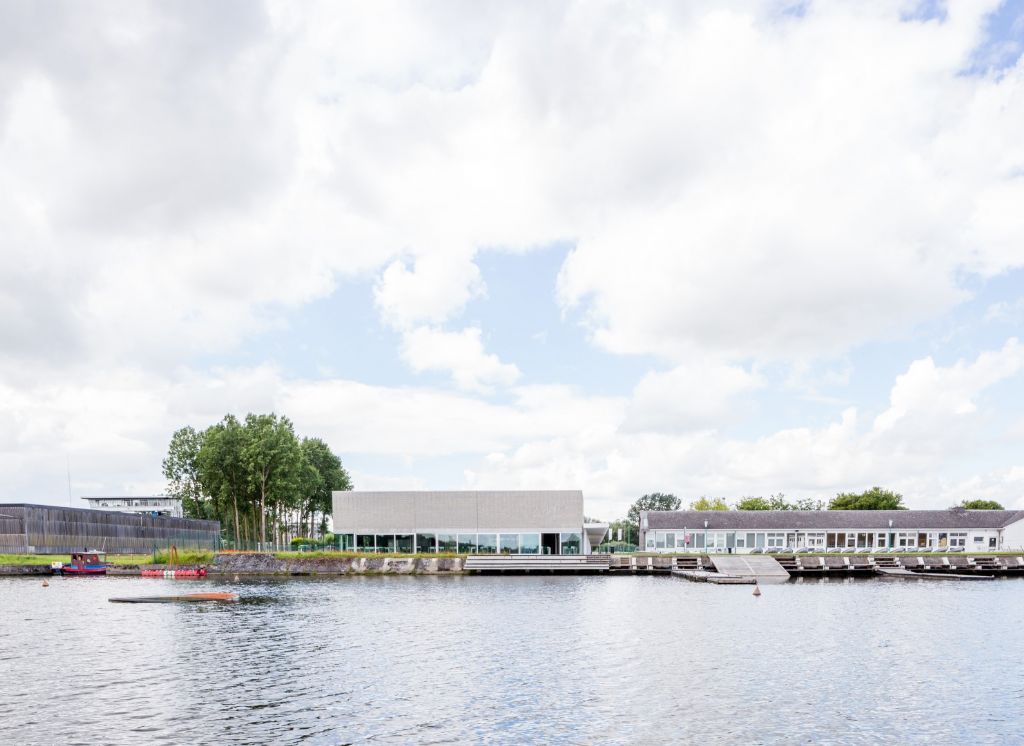 L’île sur laquelle se situe le centre sportif est au cœur du paysage alluvial de l’Escaut. Elle possède une tactilité spécifique et un haut potentiel écologique. C’est également un résidu marquant d’infrastructure industrielle fluviale. « Ce paysage alluvial est restitué dans la toile de fond du projet, marquée par des saules et une flore basse spécifique, sur laquelle un long élément d’infrastructure linéaire marque l’empreinte de l’homme - une jetée/ponton -, qui permet d’organiser les fonctions sportives classiques et l’internat », dit-on encore chez AgwA. « Lui faisant face, sur fond de paysage alluvial, se disposent plus librement des éléments complémentaires : la voilerie, les terrains extérieurs. Ce sol extensif est également habité de façon discrète par des lieux ouverts à appropriation : théâtre de verdure ou feu de camp, espace de pique-nique… »