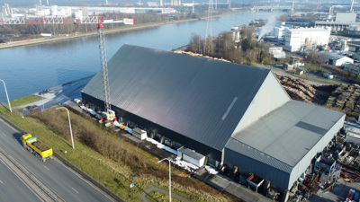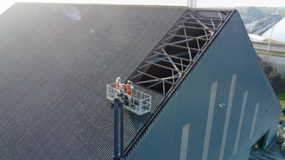 Le projet a été réalisé alors que l’activité sur le site se poursuivait sans interruption. Une attention particulière a été portée à la sécurité, notamment en raison de la proximité d’une ligne haute tension active. En concertation avec le gestionnaire de réseau, une partie de cette ligne a été temporairement mise hors tension afin de réduire les risques. Une grande partie des travaux a également été effectuée en hauteur, à l’aide d’une grue équipée d’une nacelle.