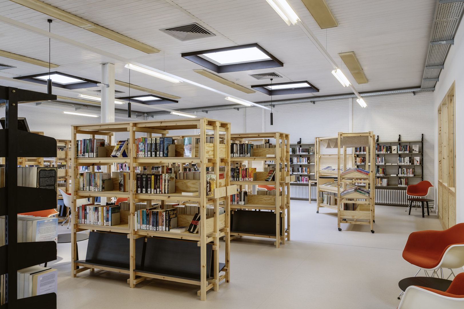 Après sa rénovation, la bibliothèque de Hoboken répond mieux aux besoins des différents groupes cibles, offre une meilleure lisibilité et dégage une atmosphère plus chaleureuse et plus accueillante. Grâce à un système de contrôle d'accès et à un éclairage automatique, la bibliothèque rénovée est désormais accessible même après les heures d'ouverture, quand le personnel est parti.