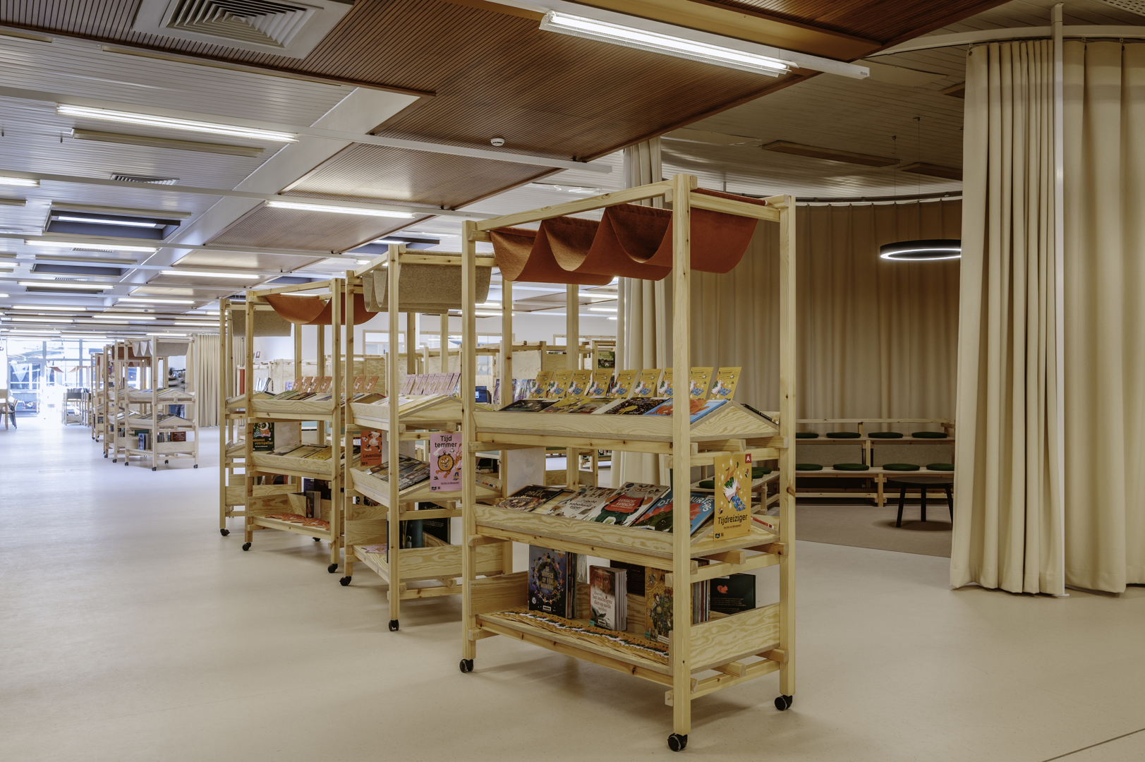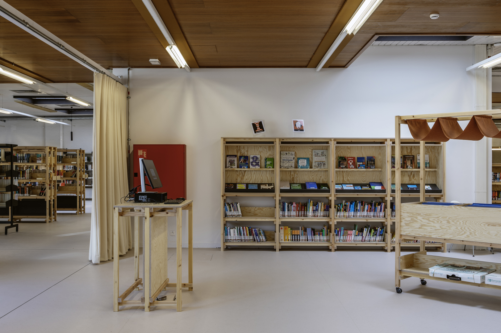 Ce mobilier a en effet été conçu de manière démontable et modulaire, la troisième et dernière stratégie de conception circulaire appliquée par ROOILIJN architectuur. Les connexions réversibles et cette conception modulaire permettent de reconfigurer et d'agrandir facilement le mobilier, ce qui est non seulement précieux sur le plan écologique, mais aussi intéressant sur le plan financier pour la bibliothèque.
