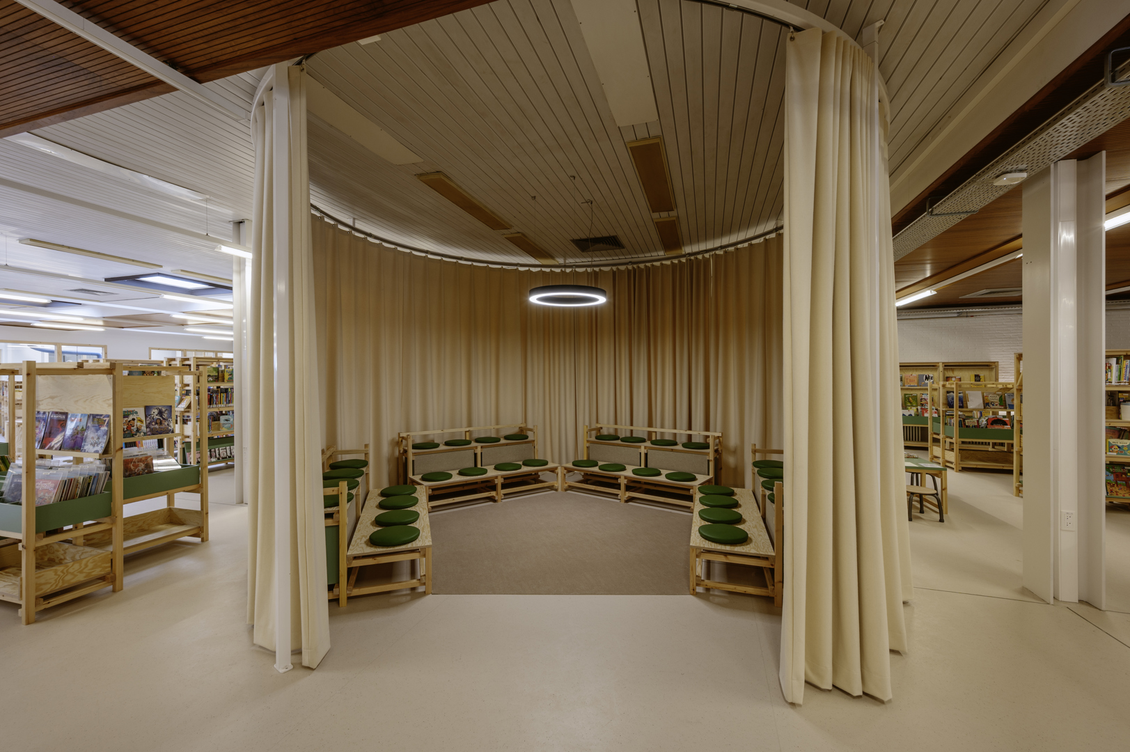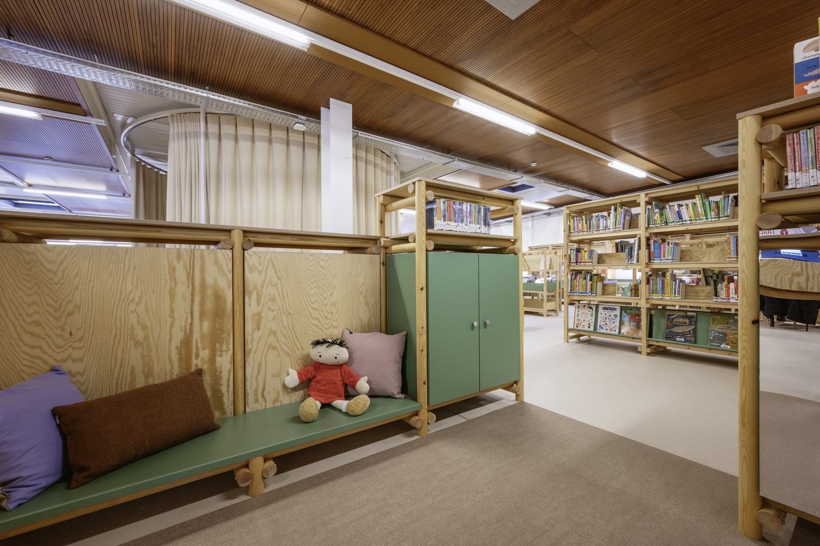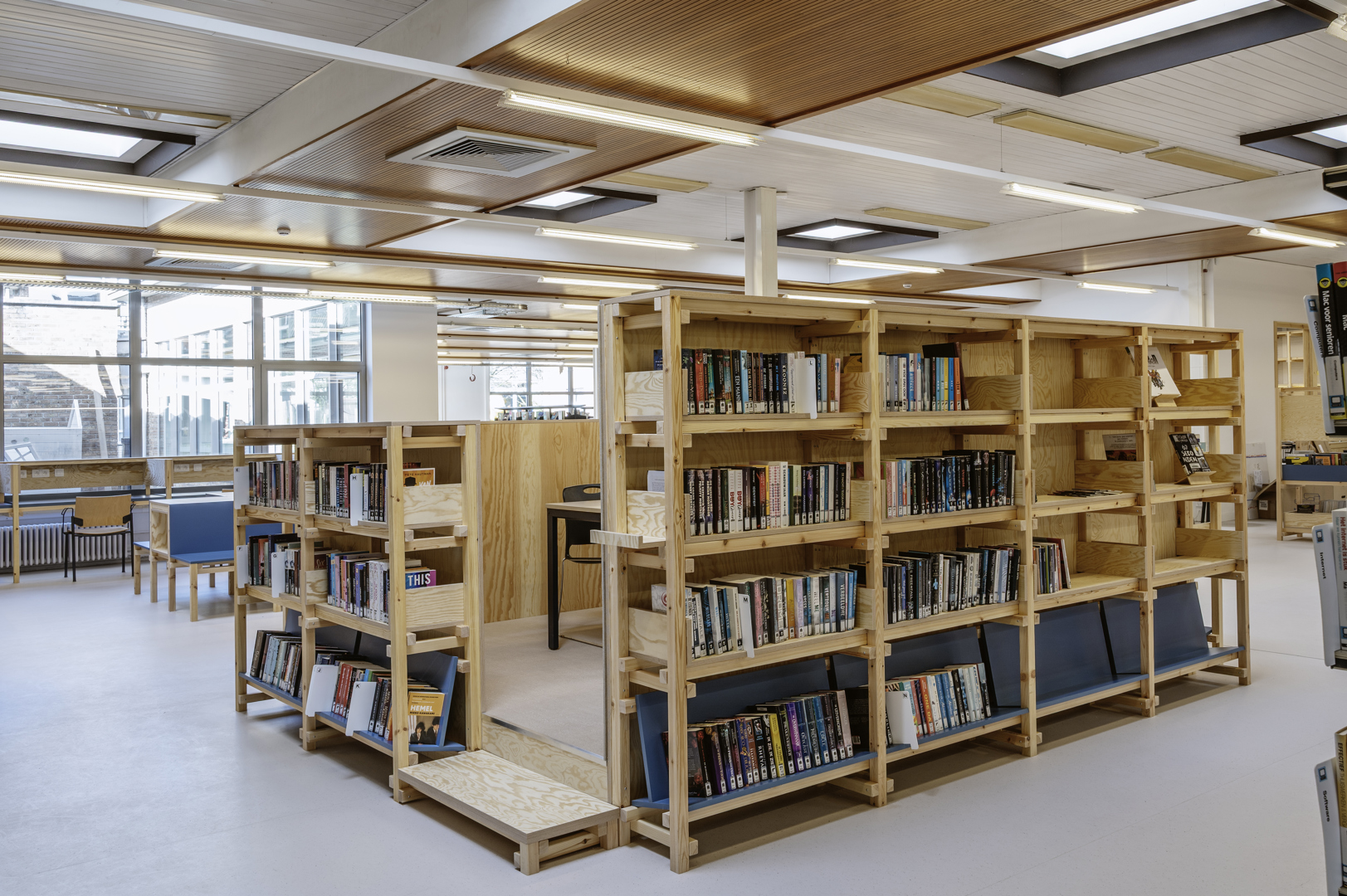 Le nouveau mobilier en bois, comme les étagères supplémentaires et les bancs, est un autre exemple de l'approche circulaire adoptée par les acteurs du projet.