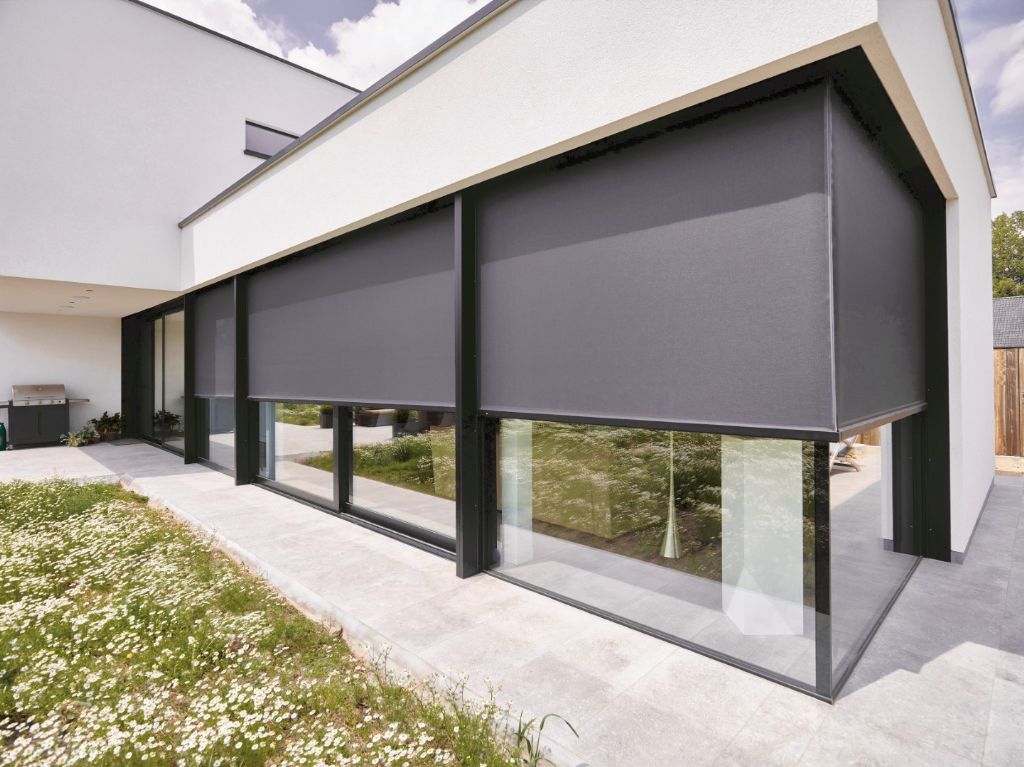 Grâce au Panovista Max, il est désormais possible d’équiper des grandes fenêtres d’angle de protection solaire sans la présence de câbles ou de coulisses dans les angles. Les deux parties du store sont actionnées par un seul moteur et une fermeture à glissière relie les deux toiles lors du déroulement. Le store est résistant au vent (jusqu’à 90 km/h), même lorsqu’il est entièrement déroulé et la vue panoramique sur l’extérieur est sauvegardée. La chaleur est quant à elle retenue à l’extérieur pour éviter que les températures intérieures n’atteignent des sommets.