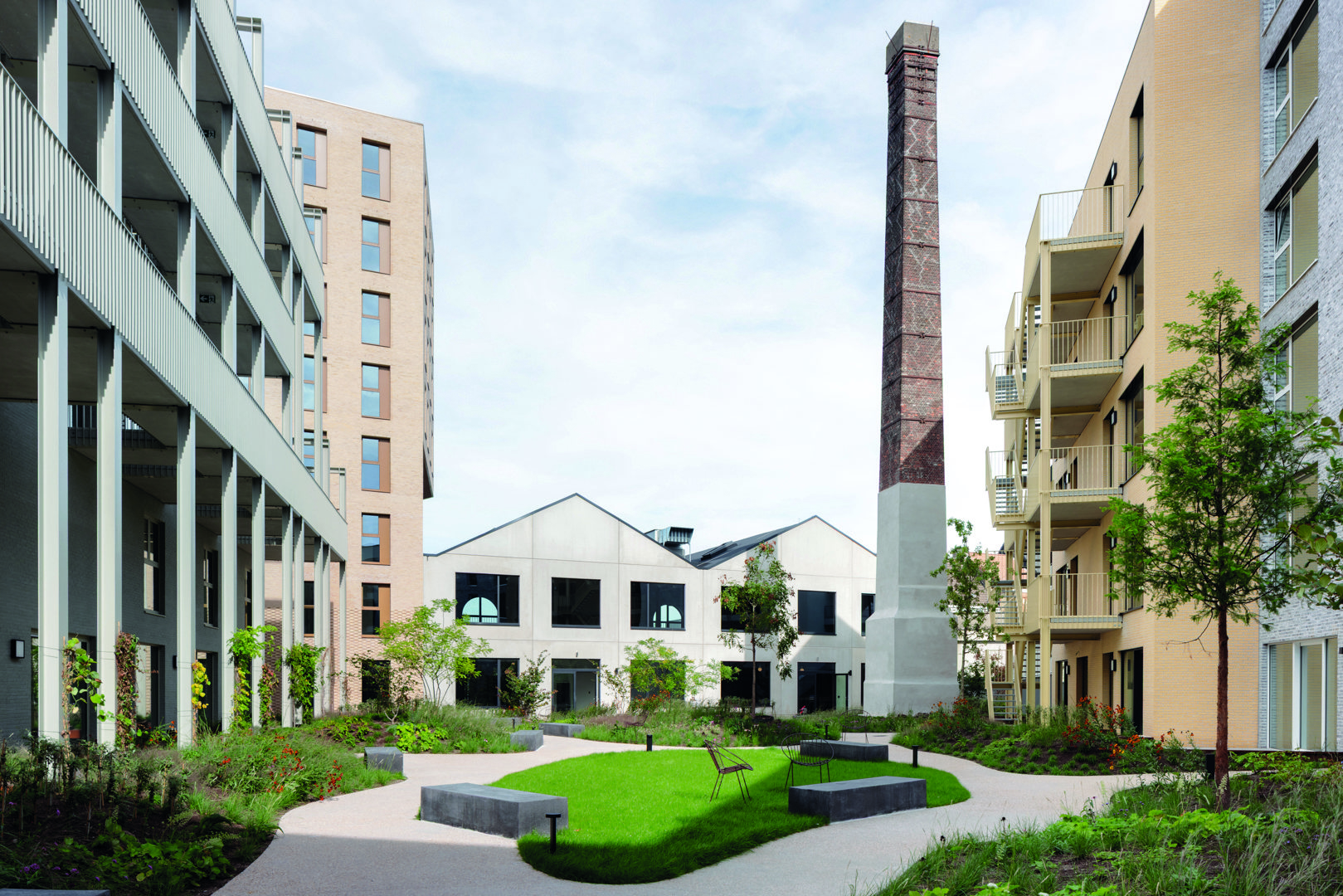 Les promoteurs LIFE et BPI ont transformé le site avec le bureau d’architectes Bold Architecten en un quartier résidentiel inclusif et animé qui rend hommage à le patrimoine industriel. Les faces typiques en brique ont été préservées et accueillent désormais 77 appartements (studios et duplex), 28 chambres d’étudiant, une salle commune et des bureaux. Le jardin central qui constitue le cœur du site invite à la rencontre et au rassemblement.