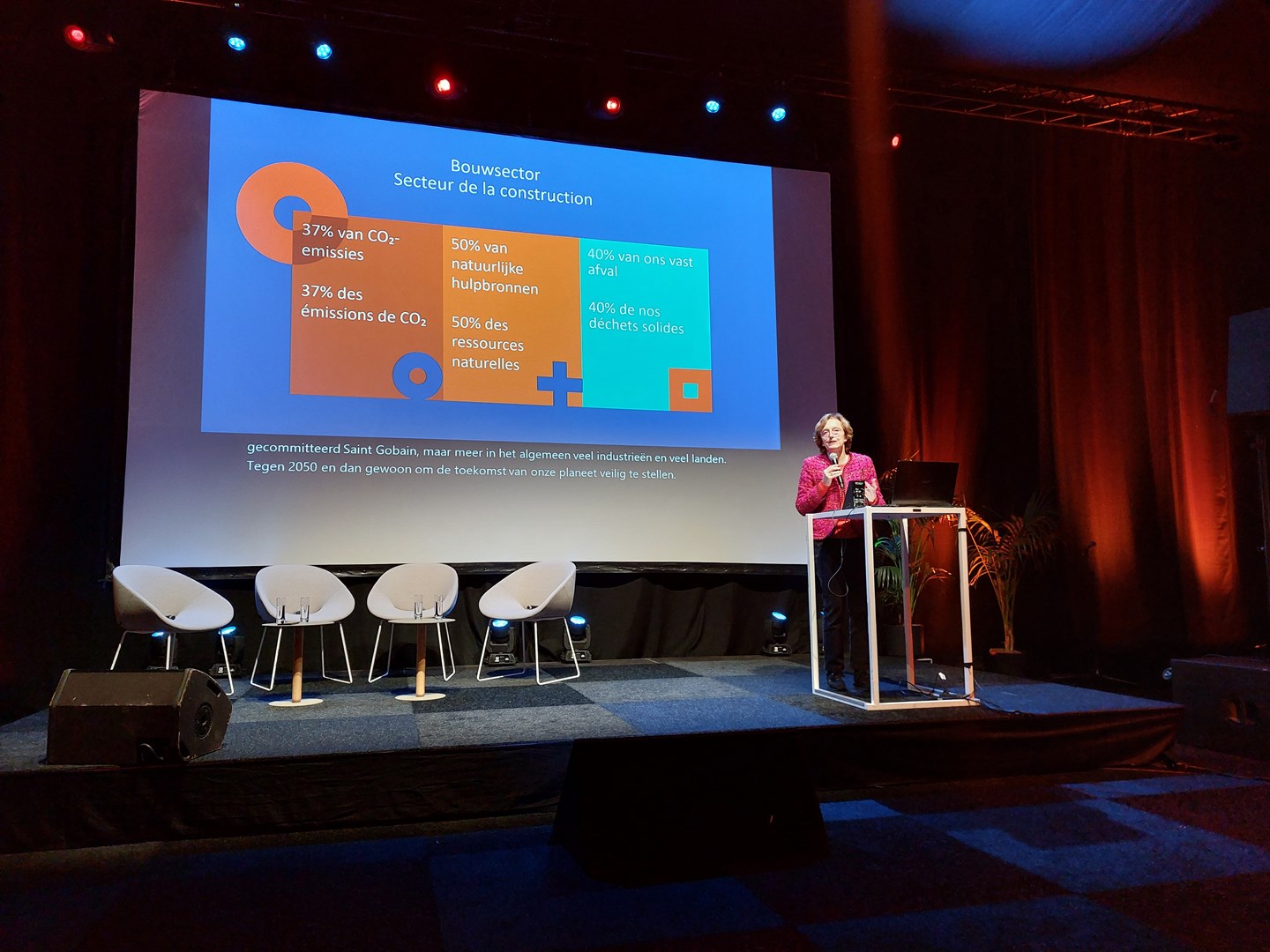 En préambule des deux tables rondes, Claire Pedini, directrice générale adjointe à la RSE au sein du Groupe, a ouvert la session par un discours axé sur le rôle de catalyseur que veut endosser le Groupe Saint Gobain dans la transition durable du secteur. Son intervention, soulignant la volonté de transparence de l’entreprise mais aussi son ambition en termes de développement durable, a mis en exergue deux aspects cruciaux pour la transition durable du secteur : la nécessité de miser sur la coopération entre les acteurs tout au long de la chaine de valeur, en transformant le modèle économique linéaire de la construction, que nous connaissons actuellement, en un modèle économique circulaire, mais aussi la nécessité de pouvoir mesurer précisément et façon exhaustive la durabilité.