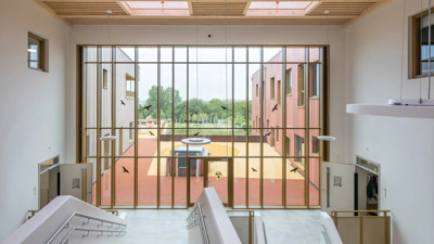 « Le bâtiment de l’école est construit à l’endroit le plus élevé du nouveau quartier. Les deux ailes donnent une vue magnifique sur la ville et les alentours. Nous avons non seulement pris en compte la qualité des espaces intérieurs, mais avons également voulu établir une relation avec le quartier grâce à la vue sur la ville », ajoute Sguazzin.