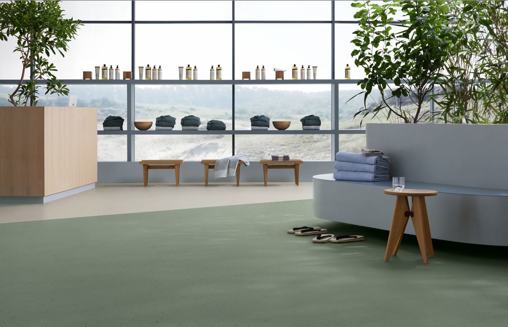 Le revêtement associe une forte proportion de matières premières certifiées biosourcées et recyclées à un design organique raffiné. Il en résulte une solution de sol haut de gamme, adaptée aux applications intensives dans les domaines de la santé, de l’éducation et du commerce où l’esthétique et la performance sont toutes deux essentielles.