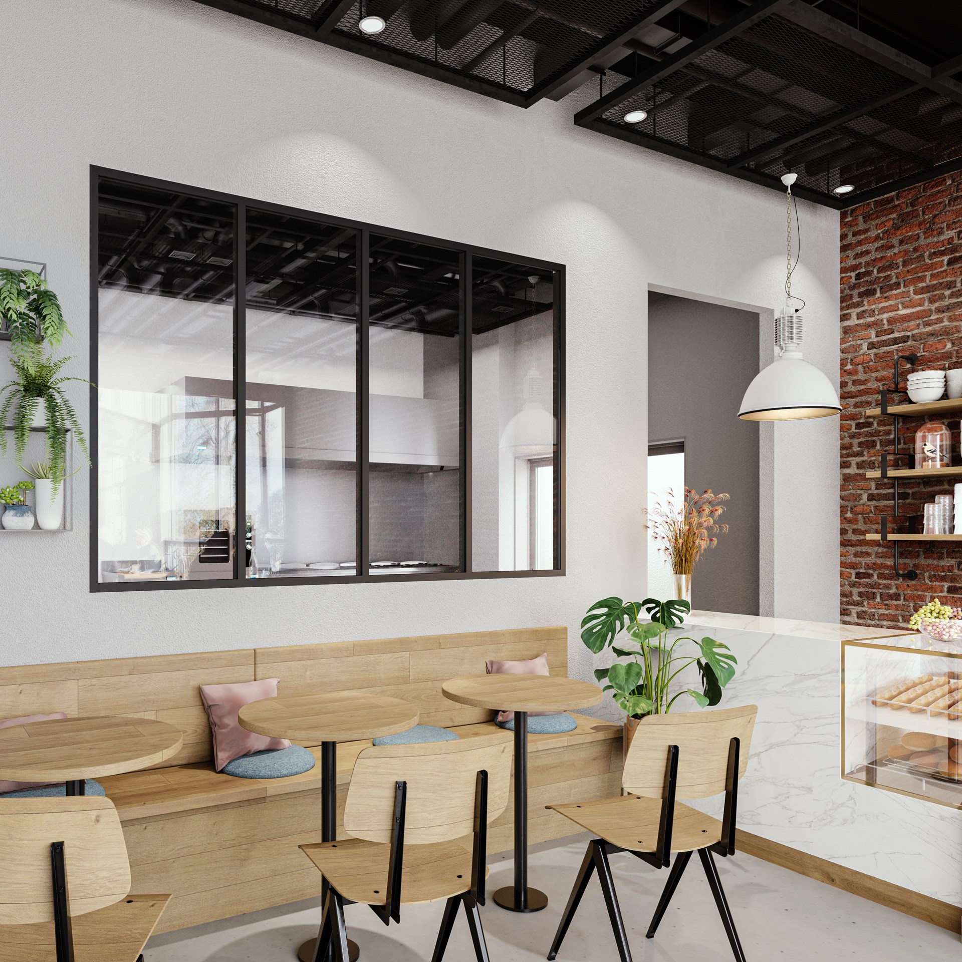 Fonctionnalité et esthétique Grâce au système divina, vous gardez toutes les options ouvertes pour diviser un intérieur sans sacrifier la lumière. Grâce au profilé de base et aux cales de réglage spécialement conçues, la position du mur peut être ajustée de 5 mm à la fois horizontalement et verticalement. Grâce au système innovant "turn 'n click", différentes épaisseurs de verre (6 à 10 mm pour le verre trempé et 33,1 à 55,2 mm pour le verre feuilleté) peuvent être utilisées sans qu'il soit nécessaire de les coller dans les profilés. Cela facilite le (dé)montage, sans risque de bris de verre. Les panneaux de verre allant jusqu'à 2,8 m de haut et 1,5 m de large, donnent un aspect industriel mais minimaliste aux applications résidentielles et commerciales telles que les restaurants et les bureaux.