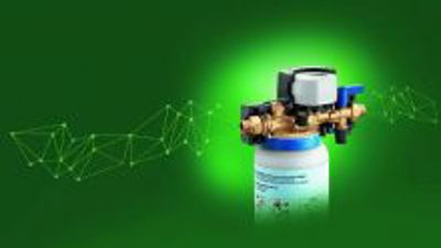 - Une cellule de mesure de conductivité intégrée contrôle l’efficacité du traitement et indique quand la cartouche doit être remplacée.