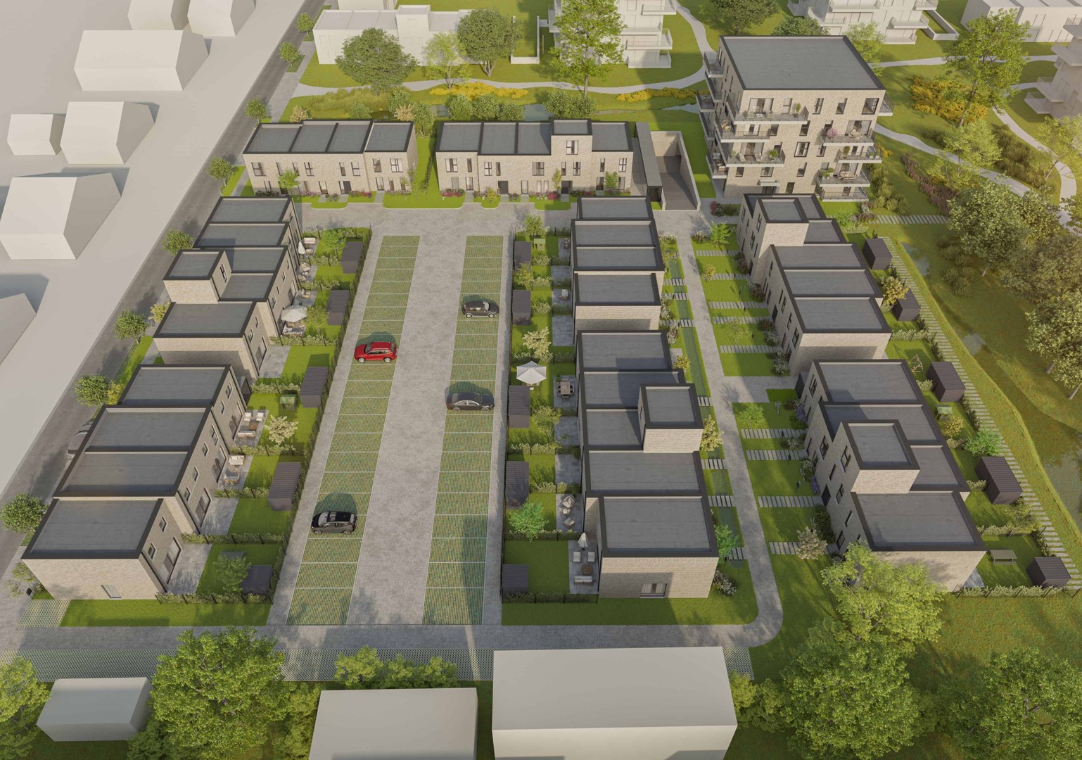 Construire, c’est plus que simplement ériger des habitations. BFB Construct contribue à la création d’un environnement de vie complet, où durabilité et confort résidentiel se rejoignent. Le parc central qui traverse le projet crée non seulement calme et espace, mais contribue également à une gestion durable des eaux de pluie via des noues.