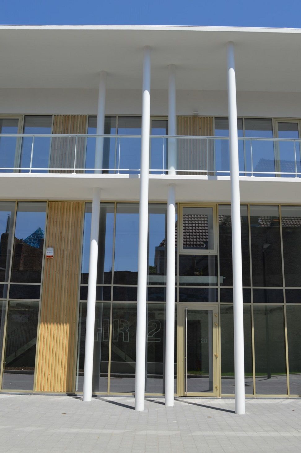 Bertrand Feys : « Le volume du Centre d’Entreprises a été implanté de manière à offrir à l’espace public la façade vitrée des bureaux des halls relais qui se développe derrière la colonnade se déployant sur l’ensemble de celle-ci. La façade de la rue Cherquefosse reprend le gabarit des habitations de cette rue mais s’en différencie par son parement en pierre bleue écurée, pierre dont une grande partie de la ville de Tournai est historiquement construite. » Les bureaux du Centre d’Entreprises sont aménagés au-dessus des halls relais et se déploient autour d’un patio via une circulation périphérique vitrée.
