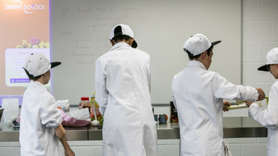 Iris Cornette : « L’affiche, le symbole, d’une école comme la nôtre est souvent le chef renommé. En général, le boucher artisanal attire moins l’attention des médias, mais il est pour nous tout aussi important. Dans le monde de l’alimentation, tout le monde est un maillon qui peut contribuer au développement de nouvelles techniques et concepts. Ce travail d’équipe est une des raisons pour lesquelles nous trouvons important de proposer un premier degré avec une large possibilité d’orientations. Les deux premières années, tous les élèves reçoivent la même formation, où sont abordées toutes les facettes de l’industrie alimentaire. Certains élèves savent dès leur arrivée très bien ce qu’ils veulent et d’autres évoluent dans leurs choix. Ils apprennent aussi à connaître des amis, qui suivront plus tard d’autres spécialisations, ce qui peut conduire à des expériences intéressantes. L’offre de toutes ces disciplines différentes est l'unique selling point de Ter Groene Poorte. Cette vision large est de grande valeur. »