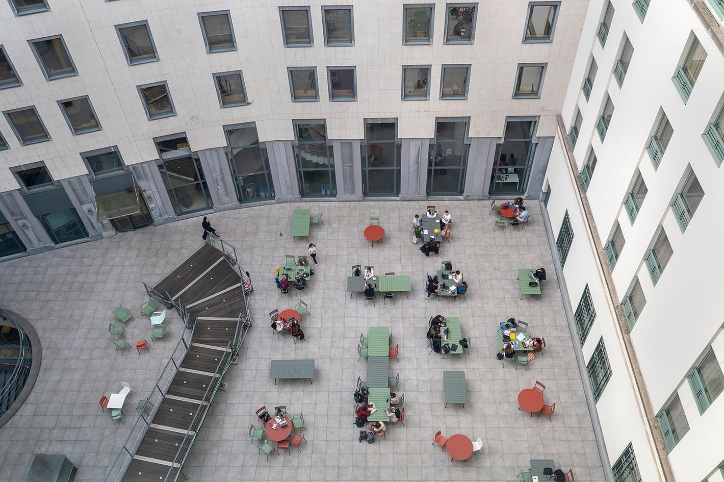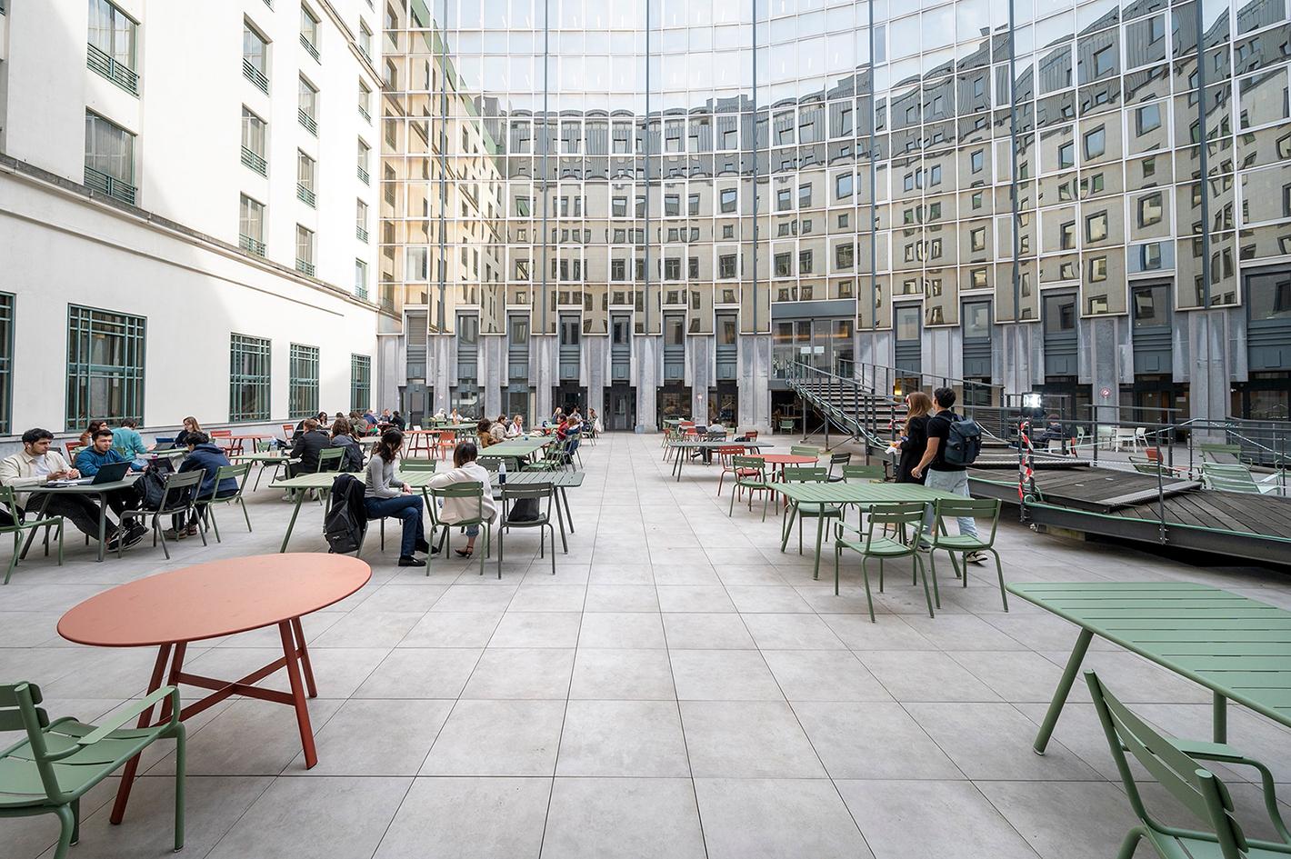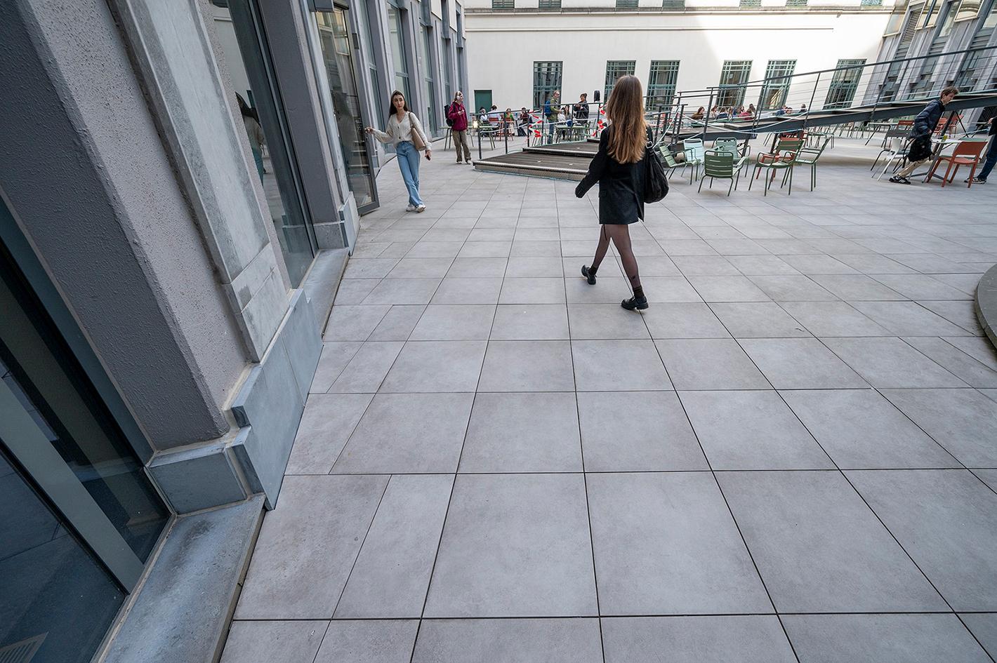Le fruit de ces efforts est une magnifique terrasse de 800 mètres carrés qui constitue désormais un espace vivant pour les étudiants et le personnel, propice aux discussions, aux repas ou aux rencontres. L’aménagement avec un mobilier élégant renforce l’attrait et la fonctionnalité de cet espace, qui est resté partiellement accessible pendant toute la durée des travaux.