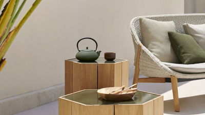 La base de la nouvelle table d’appoint Tairu est formée par un solide rectangle creux en teck. Le plateau réalisé en pierre de lave du Vésuve fait la particularité de chaque table. La finition émaillée appliquée manuellement à l’éponge naturelle nuance la couleur en fonction du reflet de la lumière sur le plateau. En cas de visite imprévue, vous pouvez facilement déplacer la table grâce aux poignées intégrées. Les plateaux sont disponibles en quatre teintes sophistiquées, chacune dans une finition craquelée subtile.