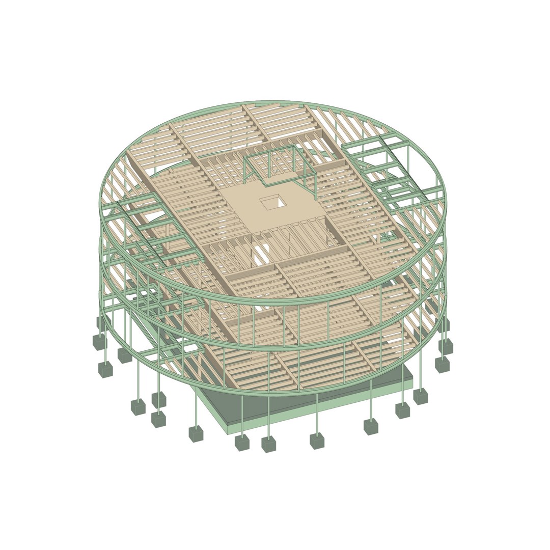 Ainsi, le bâtiment possède un noyau en CLT - dans lequel les salles de bains s'incurvent autour de la canalisation centrale - à partir duquel partent des poutres en bois jusqu'à trois anneaux métalliques situés à l'extérieur du bâtiment. Par conséquent, tous les murs intérieurs ainsi que les murs extérieurs sont non porteurs et tous les étages peuvent être aménagés librement et indépendamment les uns des autres. De plus, cette disposition peut facilement être modifiée à l'avenir. La structure porteuse elle-même a également été conçue pour être facilement démontable à tous les niveaux.