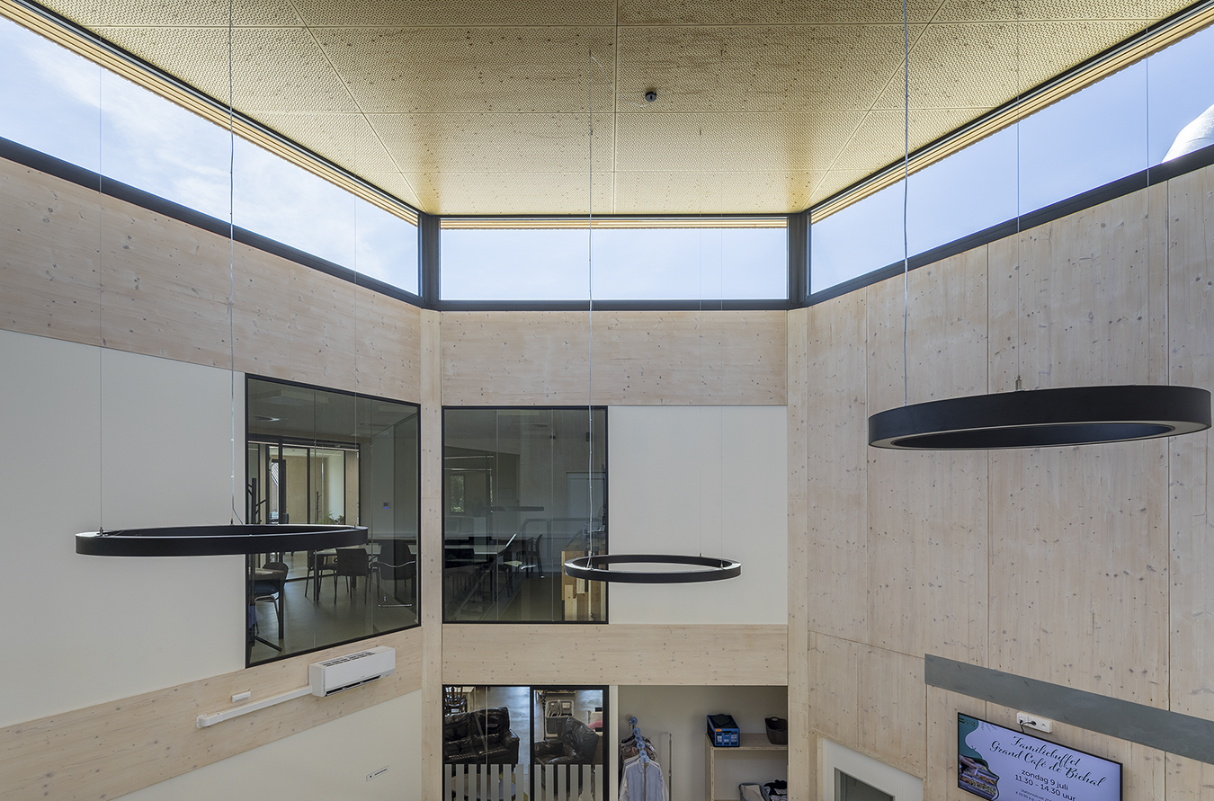 Le bâtiment a été équipé d'un plancher sec, composé plaques de sol en Fermacell, des plaques de plâtre à base de gypse résiduel ou de plâtre RO. Un revêtement de sol Marmoleum de Forbo Flooring Systems, à base d'huile de lin, a été posé par-dessus.