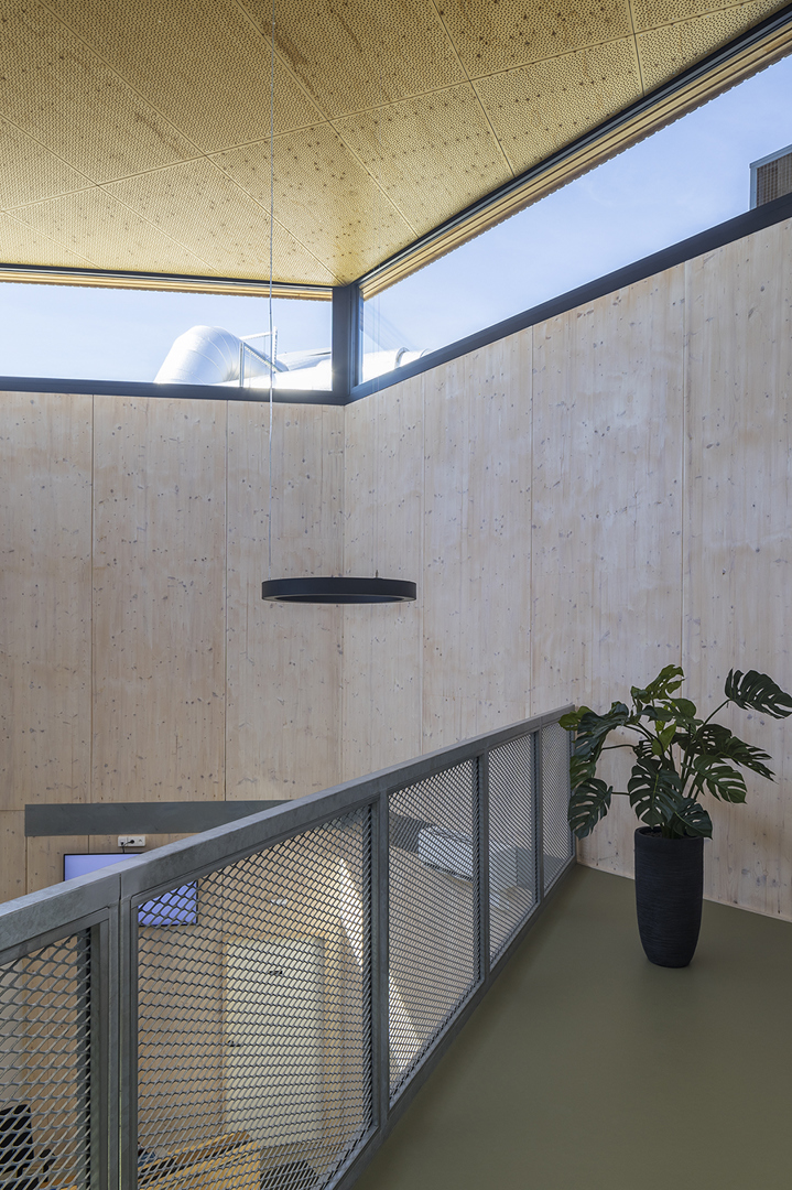 Au niveau de la conception ou du bâtiment, les architectes de la DAM ont également adopté une démarche circulaire. La plupart des cloisons intérieures sont non porteuses et - parce qu'elles sont ainsi reliées de manière réversible comme tous les éléments du bâtiment - elles sont donc faciles à enlever ou à déplacer. La structure du bâtiment hexagonal a été conçue pour être répétitive et facile à lire, contribuant ainsi à l'adaptabilité du bâtiment. En effet, si une activité particulière de l'asbl se développe ou change, l'espace peut être facilement adapté en conséquence.