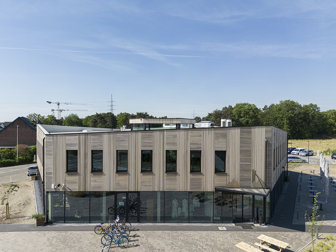 L'asbl de Biehal, une entreprise de travail adapté, est installée depuis plusieurs mois dans ses nouveaux locaux à Lommel. Les locaux, dont la forme hexagonale étonnante forme un nouveau point de repère dans le paysage, reposent sur une construction en CLT, sont multifonctionnels et entièrement démontables. Le projet est signé DAM architecten et la réalisation a été assurée par Beneens. Moins d'un an aura été nécessaire pour mener à bien ce projet.