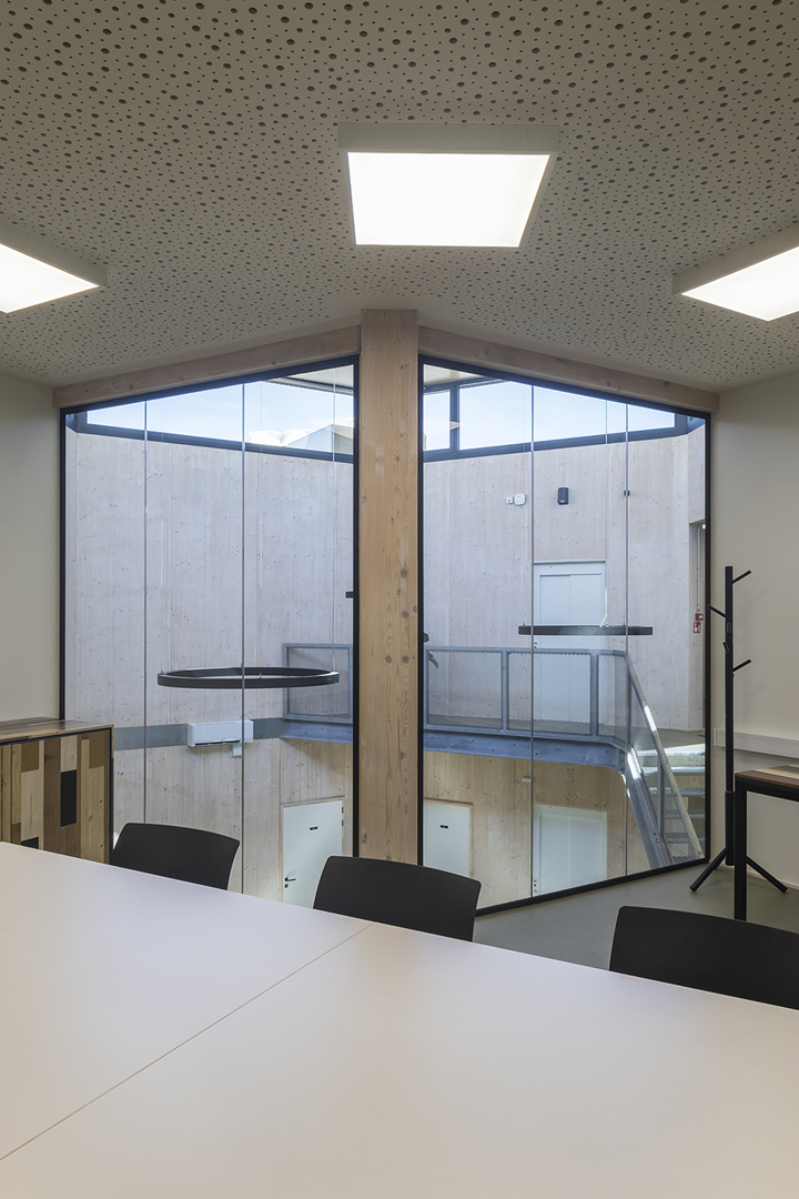 Interrogés sur les plus grands défis du projet, les architectes de DAM ont mentionné la combinaison de plusieurs fonctions dans un même bâtiment, ce qui n'était pas une mince affaire, tant sur le plan technologique - les exigences en matière de confort étant partout différentes - que sur le plan acoustique. Limiter l'espace de circulation afin de perdre le moins d'espace possible pour les différentes fonctions s'est également avéré difficile. Selon les architectes de DAM, c'est à partir de là qu'est née l'idée d'un atrium.