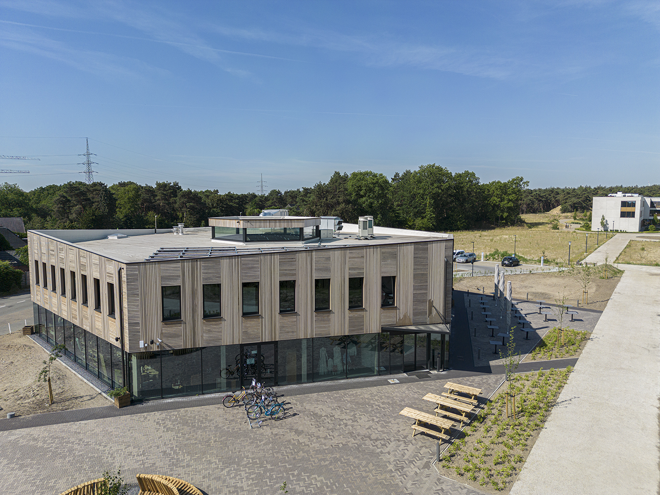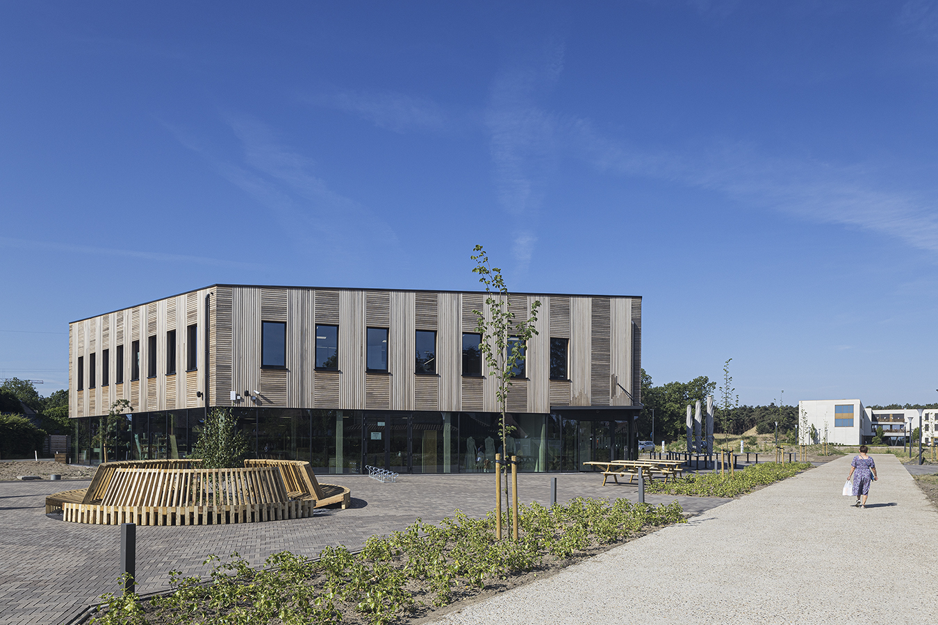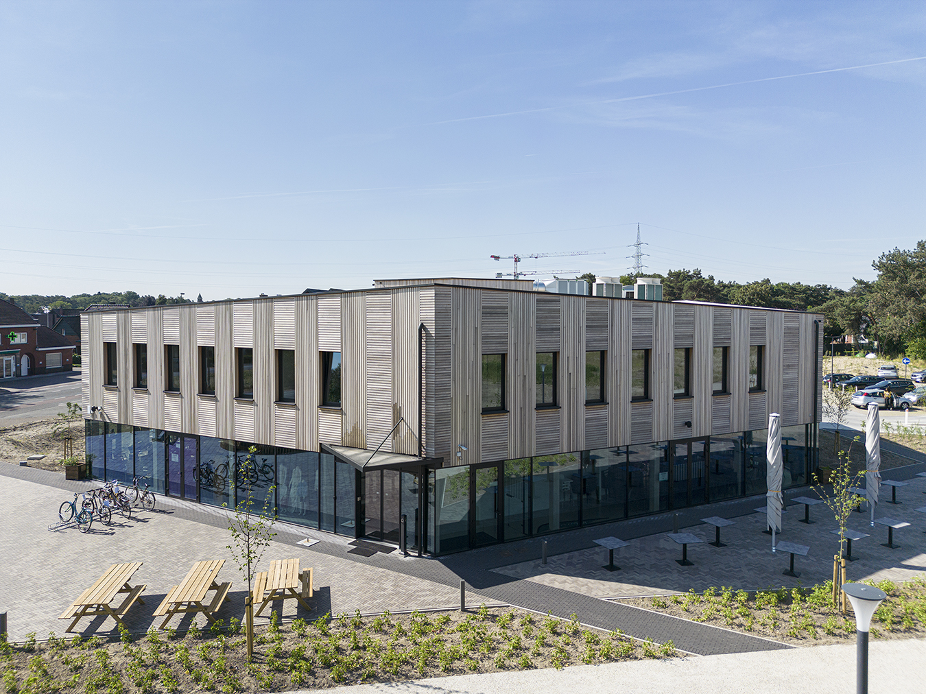 Un bâtiment hexagonal et circulaire s'inscrit dans le paysage de Lommel (DAM architecten)