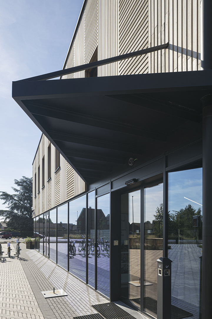 Le bâtiment compact, d'une superficie totale de 1 800 m² sur deux étages, est situé à l'angle de la Kliniekstraat et de la Stationsstraat. Sa forme hexagonale assure la transition entre la zone arrière orthogonale et le tracé incliné de la rue. Au rez-de-chaussée, outre un hall d'entrée, on trouve un magasin de seconde main, un grand café, une sandwicherie, un entrepôt et un espace sanitaire. La zone technique a également été installée au niveau 0. A l'exception de la façade sud, derrière laquelle se trouve l'entrepôt, l'ensemble du rez-de-chaussée est ouvert sur l'extérieur, du fait de sa fonction publique. Le deuxième étage, à caractère semi-ouvert, accueille des bureaux, une laverie - blanchisserie, un réfectoire, des espaces de stockage, des vestiaires et à nouveau des sanitaires. L'auvent du bâtiment s'arrondit pour donner au bâtiment une dynamique captivante et renforcer la forme hexagonale.