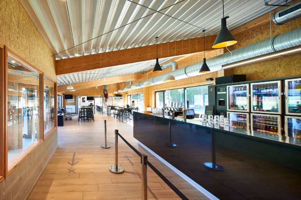 Le club de hocky nivellois Royal Pingouin souhaitait créer une nouvelle infrastructure accueillante à la fois pour les sportifs et le public. Résultat de la conception de l'Atelier d'architecture DDV : un bâtiment préfabriqué béton-bois avec caissons OSB et finition brute, implanté sur un terrain pentu situé entre deux terrains de jeu.
